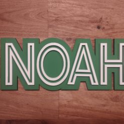 Dankzij de combinatie van stevig hout en speelse kleuraccenten krijgen de letters een vrolijke, moderne uitstraling die jarenlang meegaat. Elke naam wordt volledig op maat gemaakt — jij kiest de stijl, kleur en sfeer, wij creëren een uniek pronkstuk dat écht bij jou past.